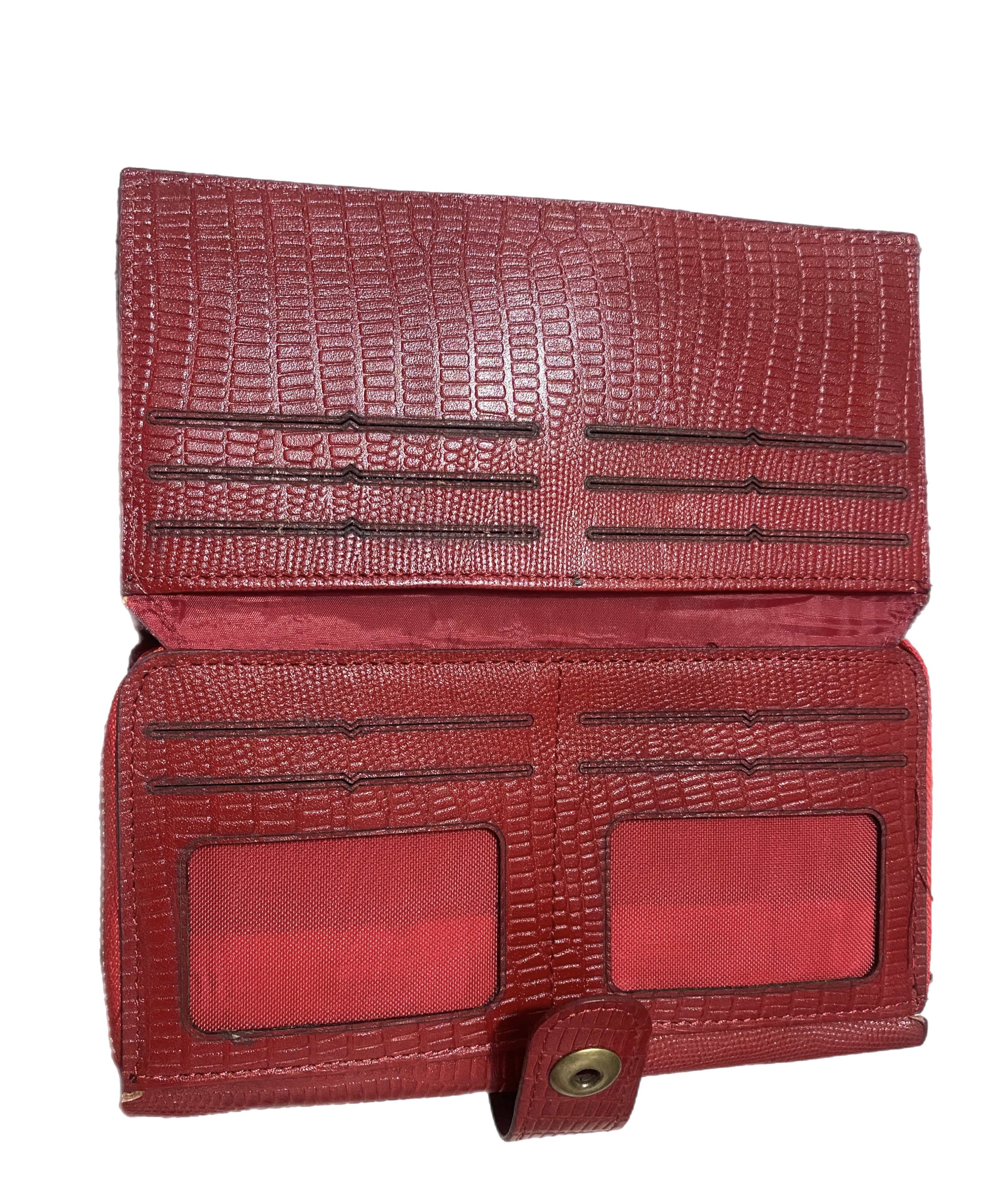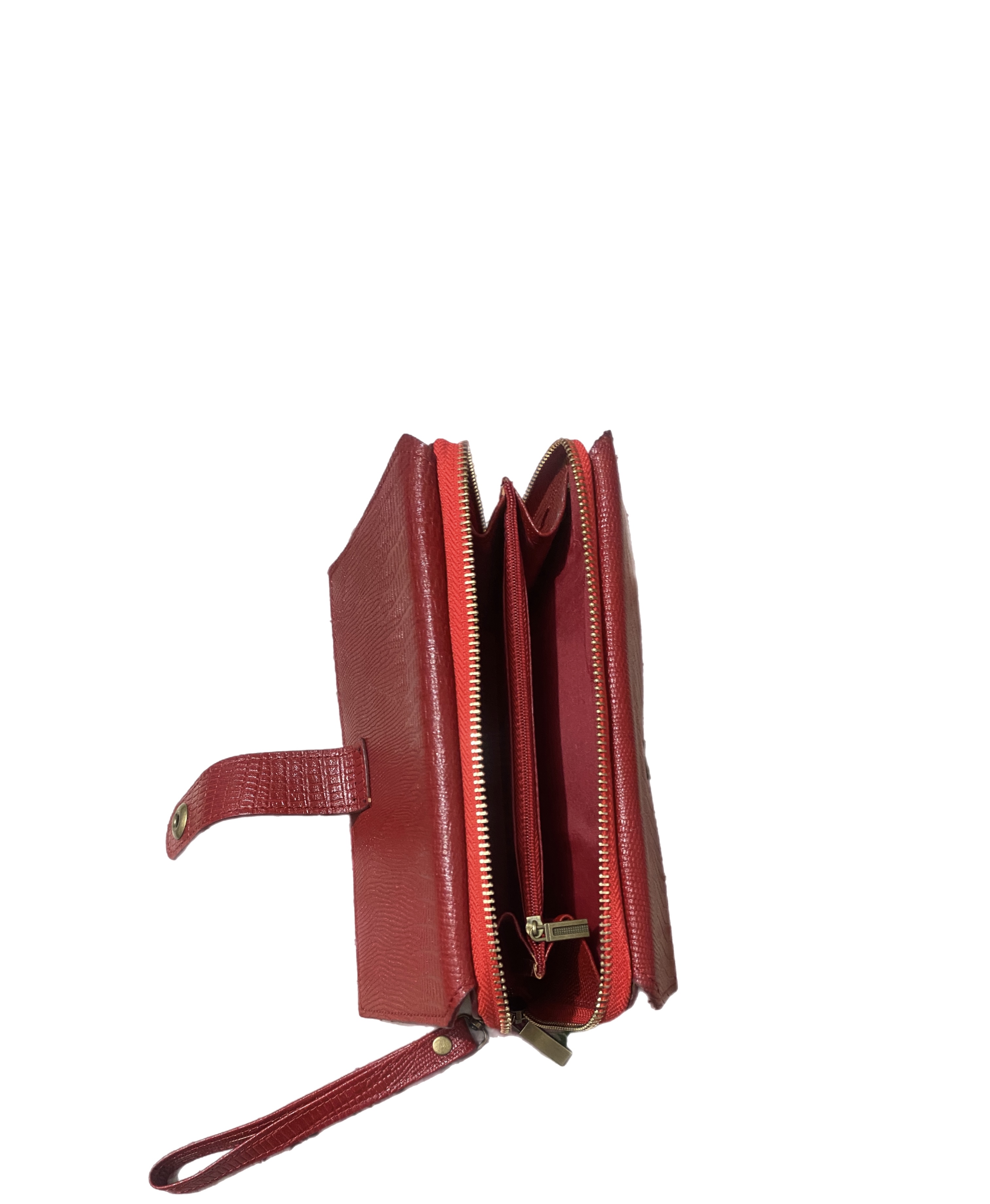 کیف پول زنانه چرم طبیعی با جای فراوان بسیار باکیفیت و شیک دارای بند مچی
